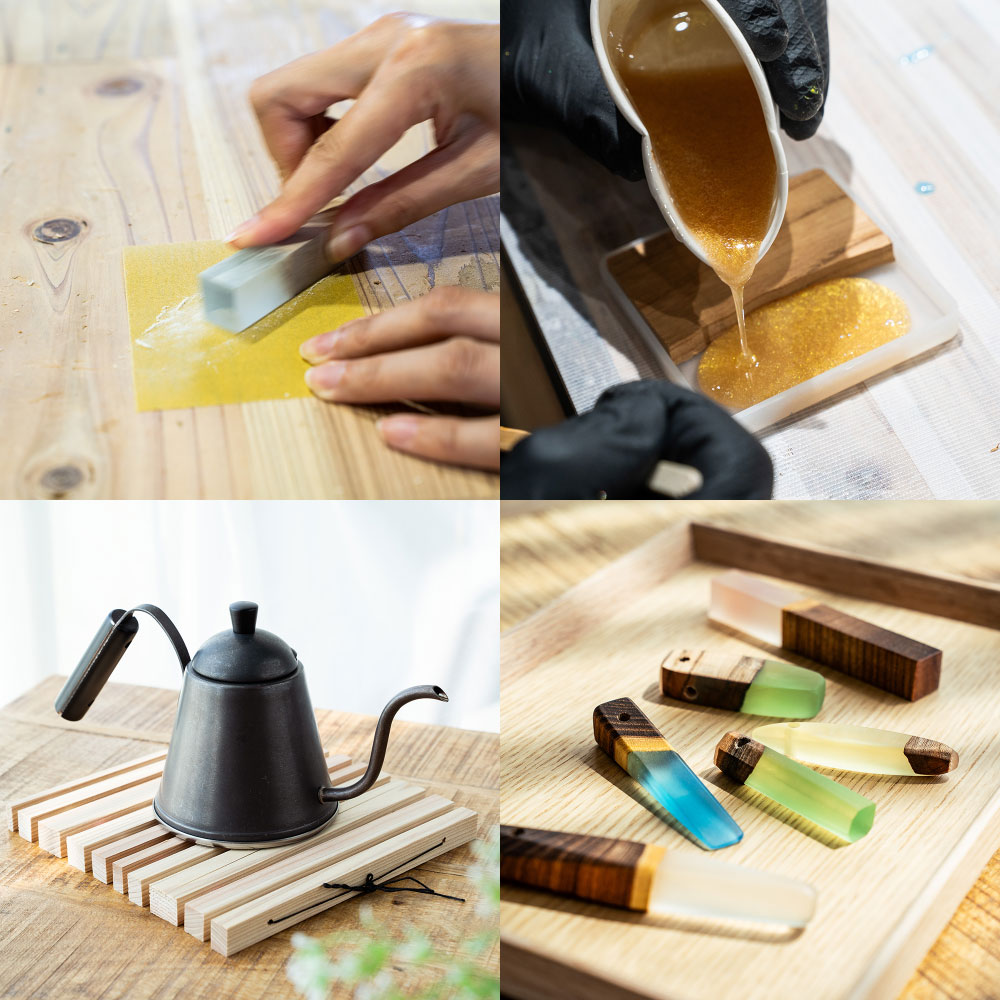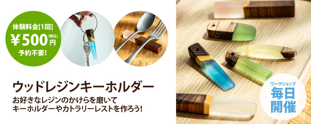 10/4(土)・10/5(日)はレジン体験に木工体験とお好きなワークショップに参加可能です。また、今回は予約不要で気軽に参加できるウッドレジンキーホルダー作りも毎日開催します!