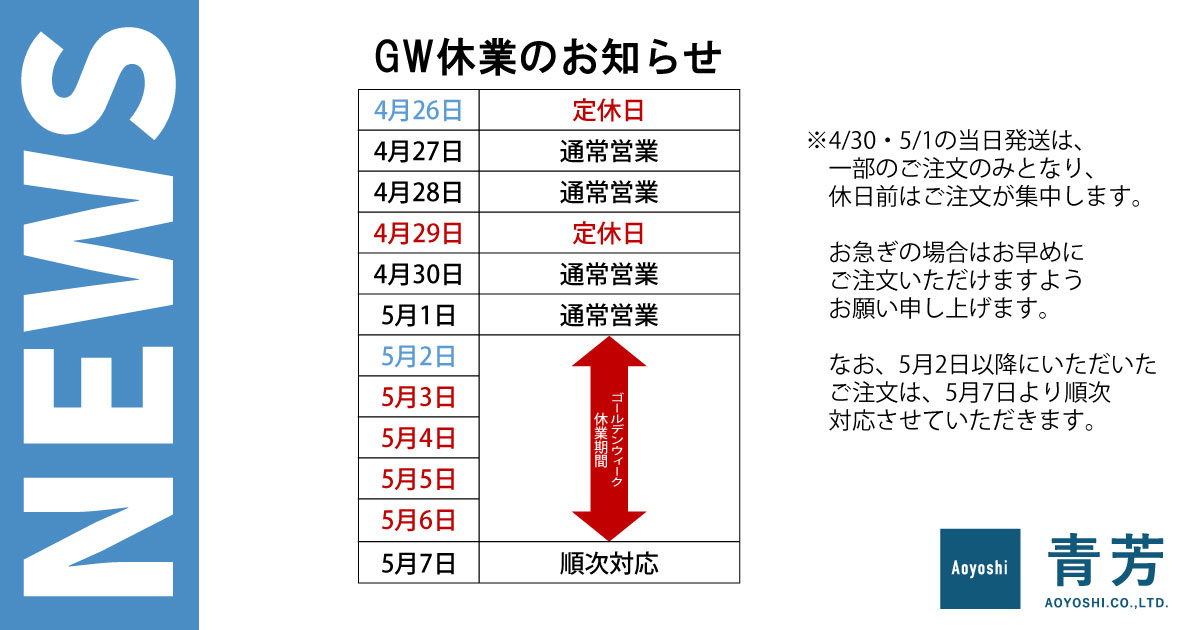 【休業日】2026年04月29日/2026年05月02日~2026年05月06日